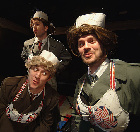 Corey Patrick, John Patrick, and Alex Smith, AKA the Andrews Sisters, sing "He was a Sweet Contruction Worker out of Frisco Bay" in true barbershop form to the tune of "Boogie Woogie Bugle Boy".