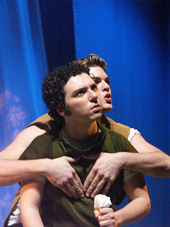 Oberon (Michael Lynch) tells Puck (Paul Ferrari) of the pleasures in flirting with the time of day when dawn breaks.