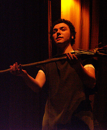 After the play ends, Puck (Paul Ferrari) comes forward to speak directly to the audience in epilogue.